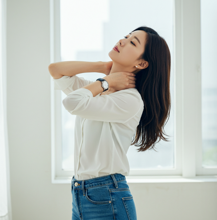 목 통증을 줄이기 위해서는 목과 어깨 주변 근육을 풀어주는 스트레칭이 필수입니다. 아래는 간단히 따라 할 수 있는 스트레칭 방법입니다.